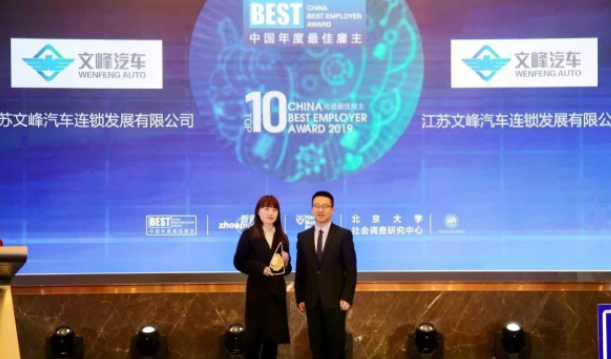 12月18日,在“2019中國年度最佳雇主頒獎盛典暨中國人力資本國際管理論壇(南方大區)”上,文峰汽車首次獲得 “2019中國年度最佳雇主南通地區十強”。