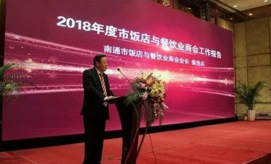 2019年9月25日下午,在由江蘇省工商聯、江蘇省總商會主辦的商會高質量發展論壇上,南通市飯店與餐飲業商會裴浩兵會長被評為江蘇省工商界優秀商會會長。