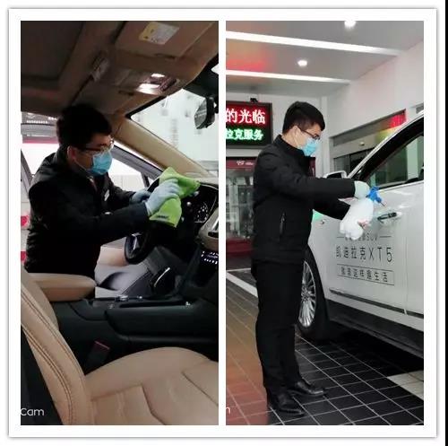 疫情發(fā)生后,公司第一時(shí)間制定了相關(guān)的規(guī)章制度,汪慶和同事們佩戴防護(hù)設(shè)備,每天至少兩次對(duì)售后及銷售辦公區(qū)域消毒,為所有到店看車的客戶測(cè)體溫,并提供口罩、手套等防控用品。