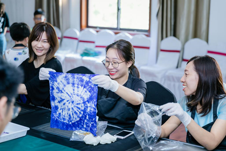 藍印花布DIY的活動環節,是車主媽媽們大顯身手的時候,她們天馬行空的創意和巧奪天工的技藝,無不展示著她們的心靈手巧和秀外慧中,一件件精美的作品在她們的努力下制作完成,其中一位車主靈感一現,在自己的衣服上印出了奔馳的星徽logo,引發了大家的贊嘆。車主媽媽們興奮、激動地和家人一起分享了自己的作品,南通文峰奔馳的工作人員也為她們的表現鼓掌致意。此次的藍印花布DIY活動環節,喚醒了車主媽媽們沉睡已久的天賦,也為她們帶來了無以言表的愉悅感受。