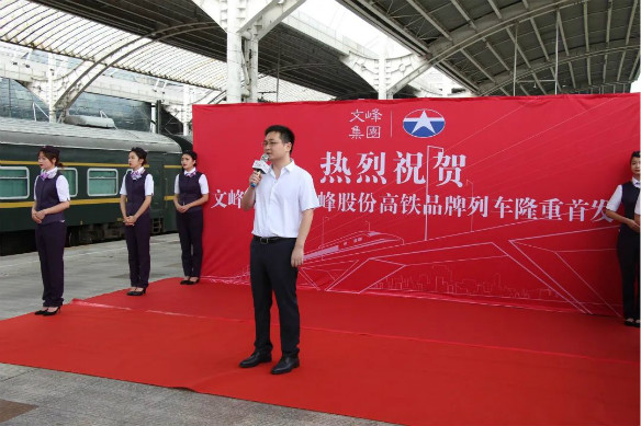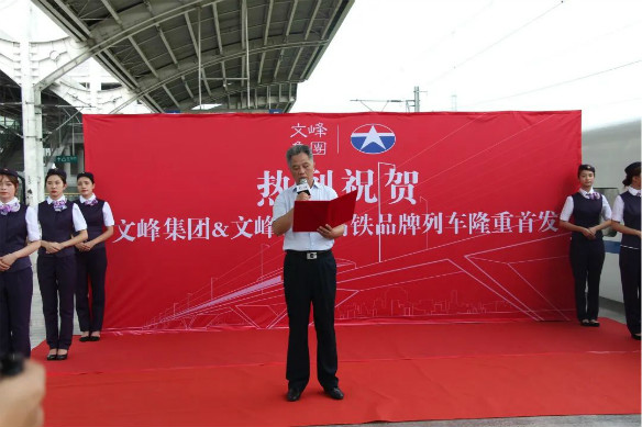 上海鐵路文化廣告發展有限公司列車分公司總經理袁峰祝賀文峰集團登陸中國高鐵,開創了高鐵營銷的新模式。相信此次文峰集團高鐵冠名列車的啟程,能夠進一步實現品牌的高效傳播。