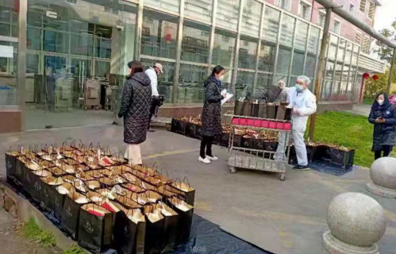 在抗擊疫情的同時,文峰飯店還積極履行企業社會責任。期間與南通大飯店共同為南通的醫務人員提供了餐食方面的支持。2月4日,文峰飯店向市第三人民醫院首次捐贈配送了食品禮盒,為奮斗在一線的醫務人員送去了文峰人的一份心意。在接下來2月份的每周,文峰飯店都會為南通市第三人民醫院、南通大學附屬醫院的醫務工作者捐贈食品禮盒,體現出文峰飯店人的溫暖與溫度。