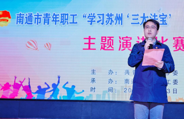 3月23日下午,南通啟瑞廣場青春激揚。共青團南通市委主辦的南通市青年職工“學(xué)習(xí)蘇州‘三大法寶’,答好南通‘發(fā)展四問’”主題演講比賽正在進(jìn)行。