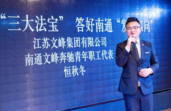 質(zhì)樸的話語時而激情澎湃,時而深情滿懷,恒秋冬暢談了作為一名青年職工應(yīng)該擔(dān)負(fù)的責(zé)任,也在演講中表達(dá)期許,對于集團未來的宏偉藍(lán)圖,他愿意用青春的擔(dān)當(dāng),不斷奉獻(xiàn)自己的青春,為南通的發(fā)展貢獻(xiàn)自己的力量。
